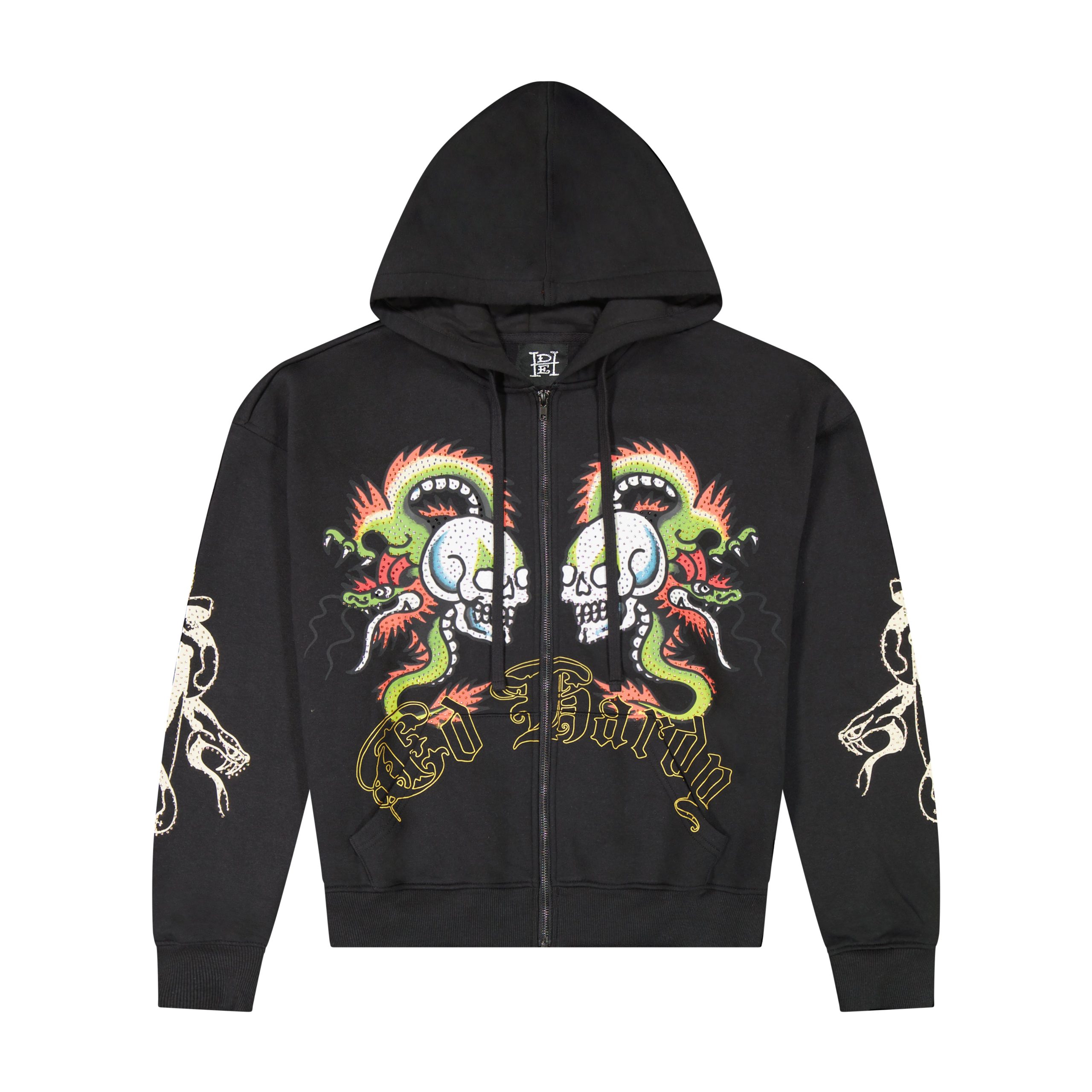 Standard fit zip-up hoodie with layered archival Ed Hardy artwork. Complete with an adjustable hood and iconic Ed Hardy logos.