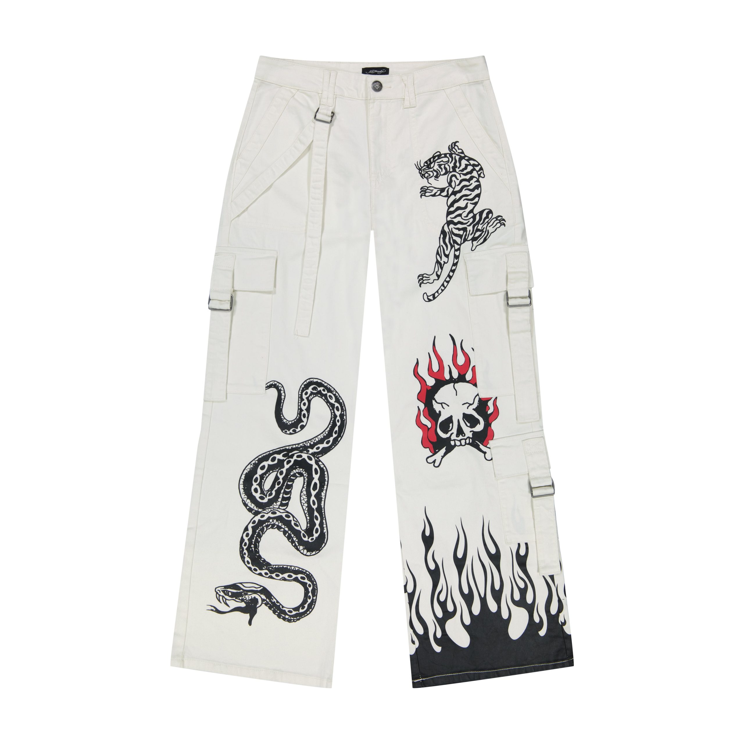 These cargo pants are cut from an ivory twill in a baggy fit. Features several iconic Ed Hardy logos on the front and complete with a signature logo on the back.