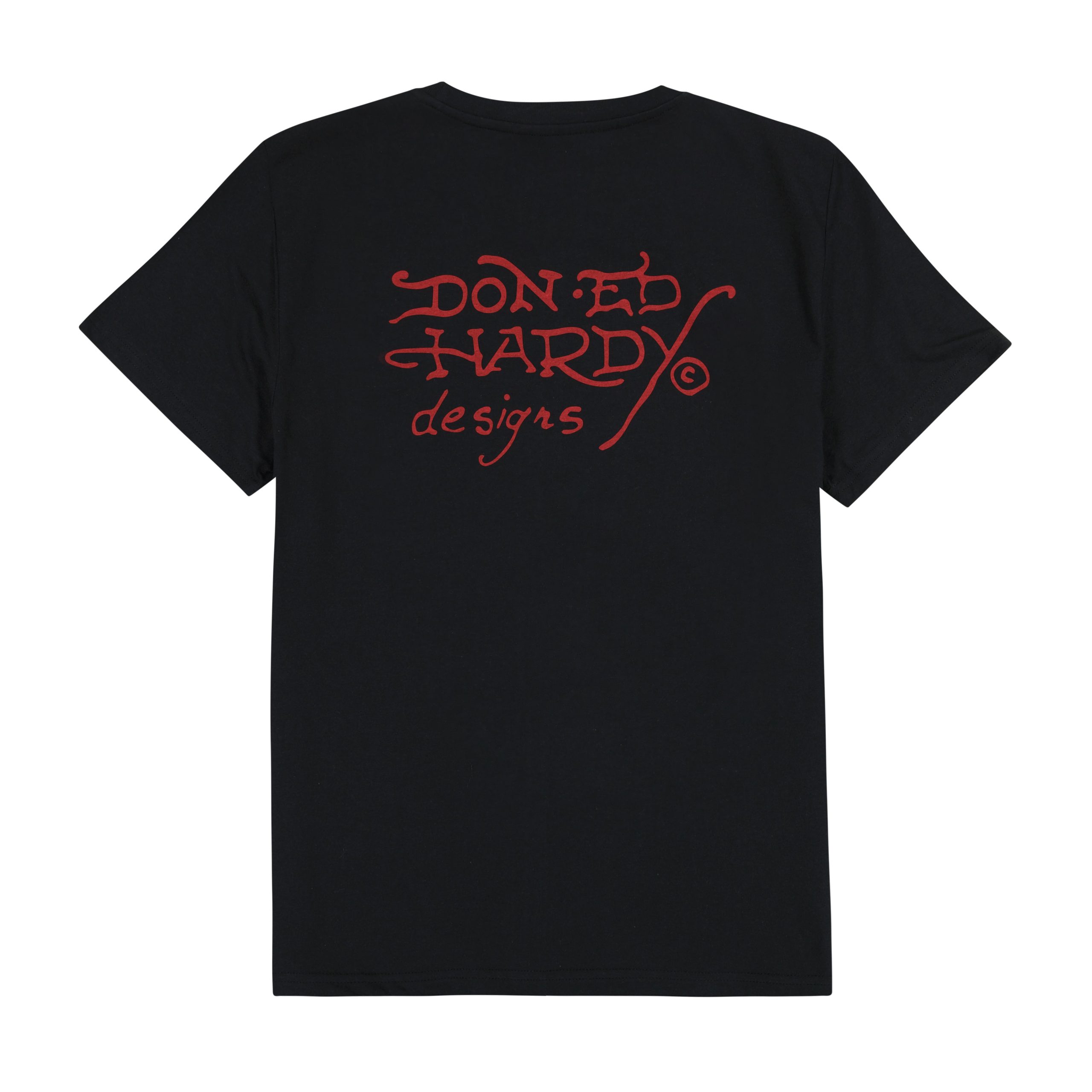 This black tee is constructed from quality cotton to ensure comfort. Complete with an iconic Ed Hardy love dies hard skull graphic layered over a tiger head.