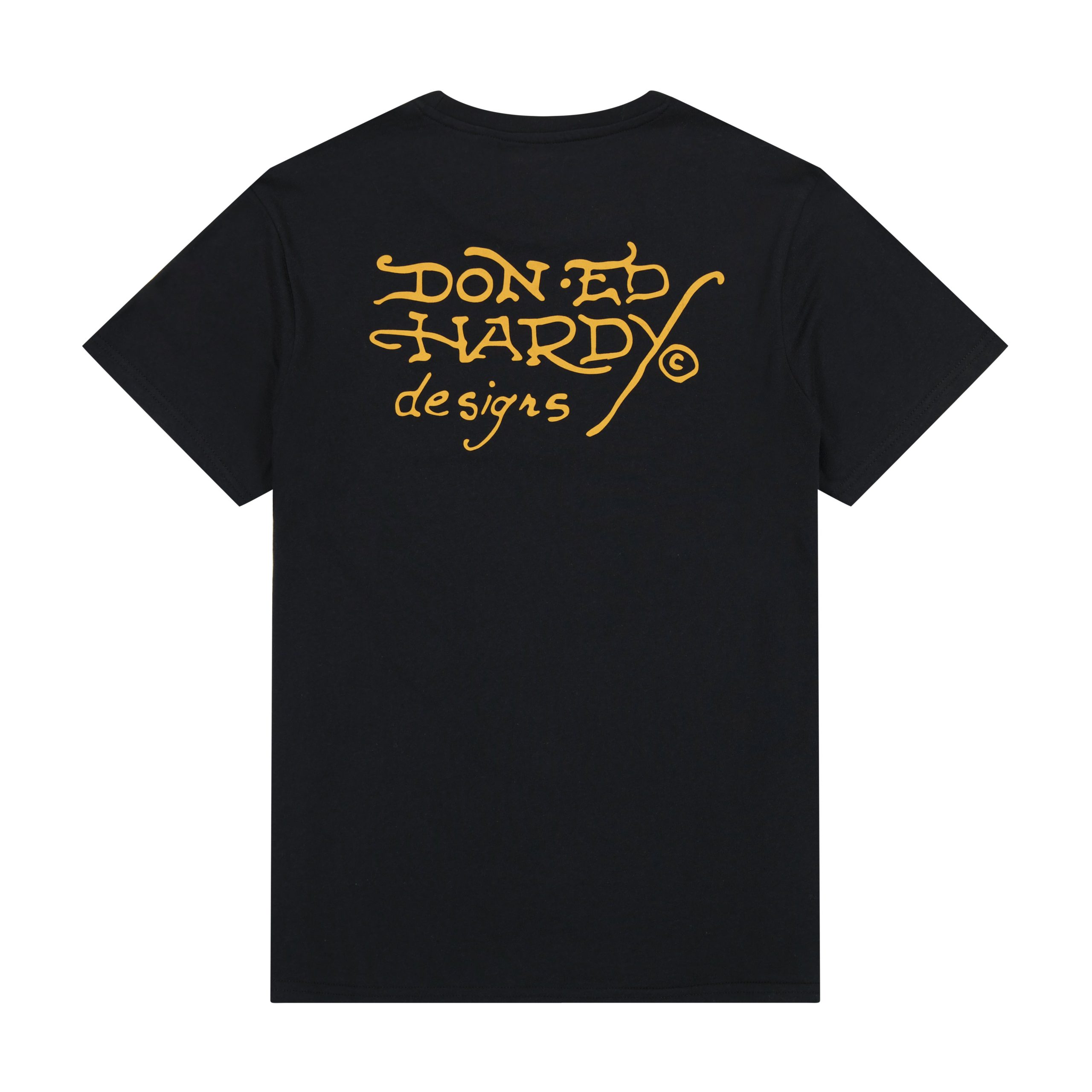 This faded black tee is constructed from quality cotton to ensure comfort. Complete with rhinestones and Ed Hardy’s signature LKS skull graphic.